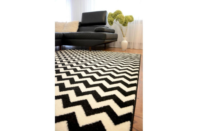 Килим SKETCH - F561 крем-чорний зигзаговий